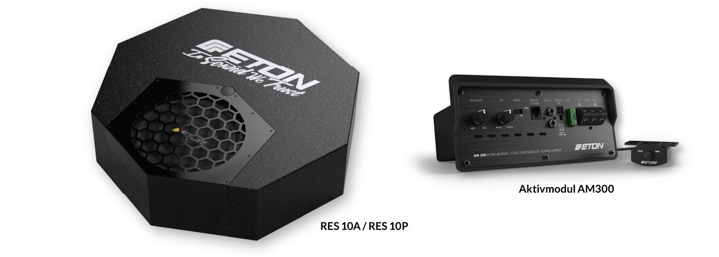 ETONs Subwoofer für die Reserveradmulde, als Aktiv- und Passiv-Variante erhältlich